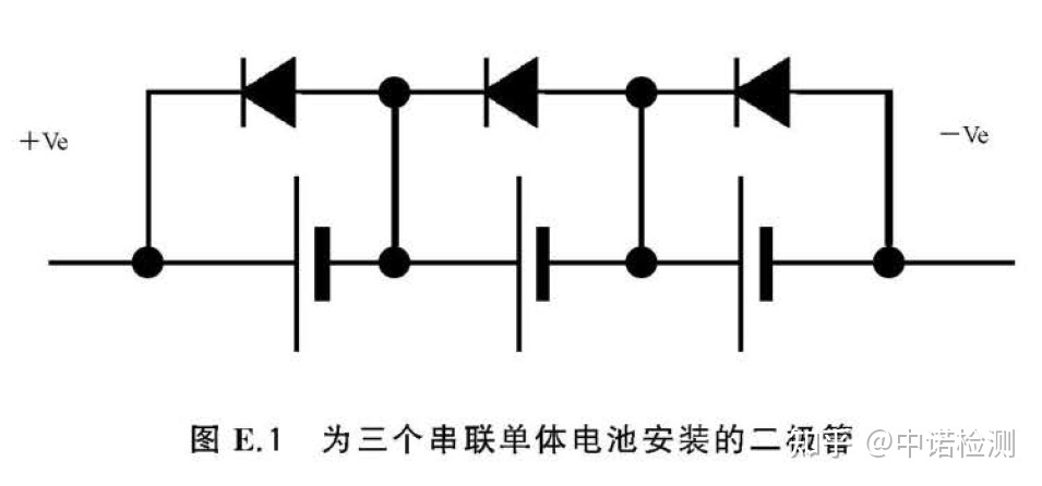 ——Use bypass diodes to limit the voltage when the polarity of each individual battery is reversed. For example, the protection circuit provided by a battery pack consisting of three individual cells connected in series is shown in Figure E.1.