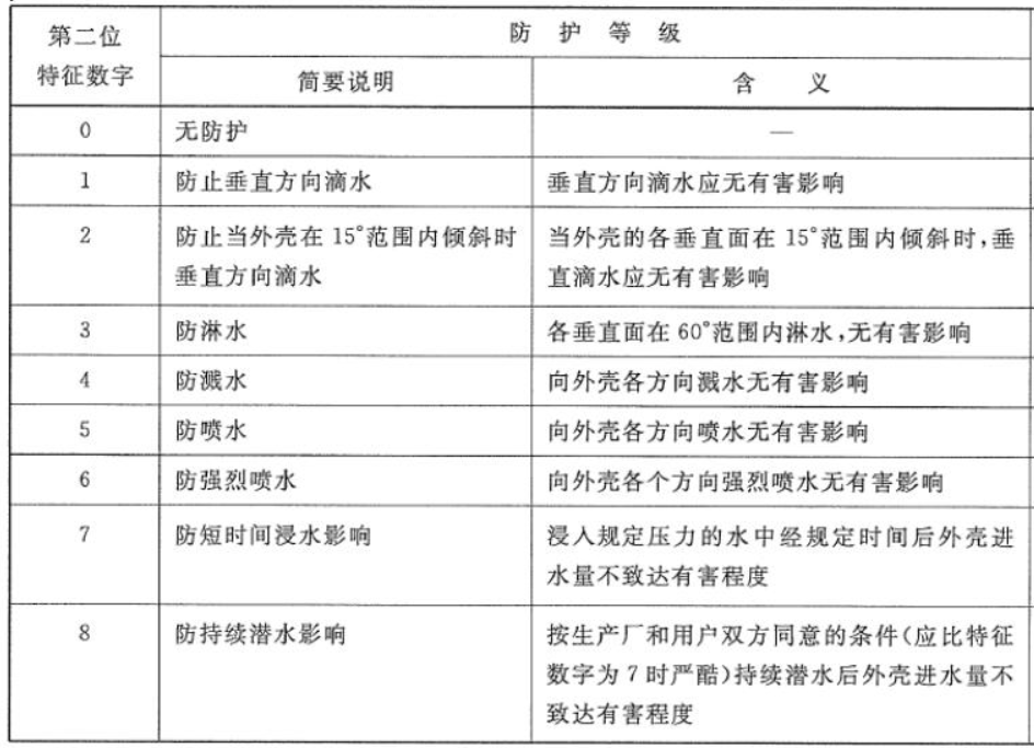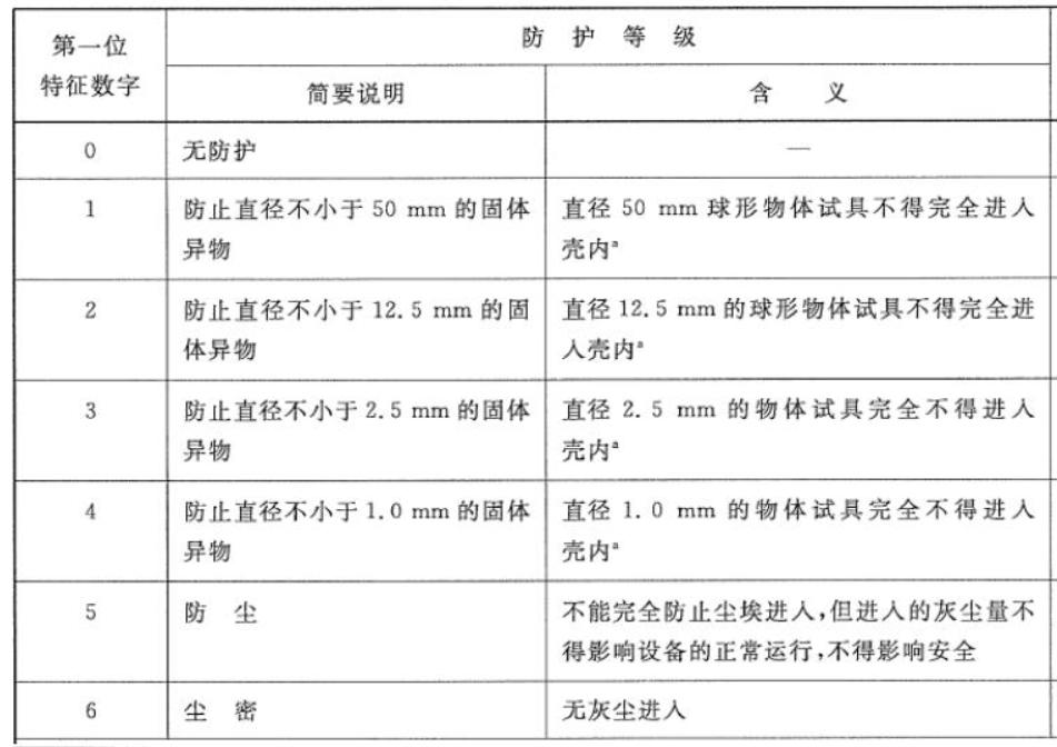 For the protection of foreign objects by electrical equipment enclosures, the format of IP rating is IPXX, where XX is two Arabic numerals, the first X represents the dust protection level of the equipment, and the highest is basically 6; The second X represents the waterproof level of the device, with a maximum of 8. The specific protection level can refer to the table below (the higher the number, the higher the protection level).